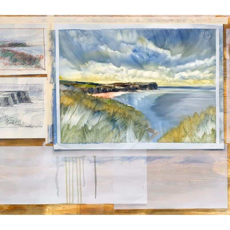 Step into the wild through expressive watercolour with Alastair Gordon. This course explores intuitive mark-making and the joy of capturing landscape with energy and atmosphere. Alastair will demonstrate his process for working quickly and responsively, balancing observation with instinct, taking his recent paintings of the Outer Hebrides as a starting point.